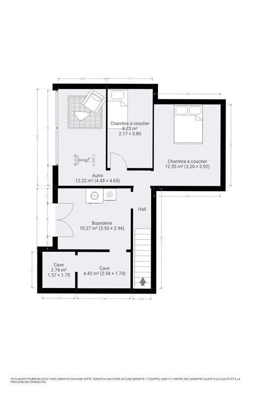 - Rdc voirie : entrée sur la chaufferie/buanderie, hall, 2 chambres, une pièce polyvalente (bibliothèque, chambre ou autre) et cave.
