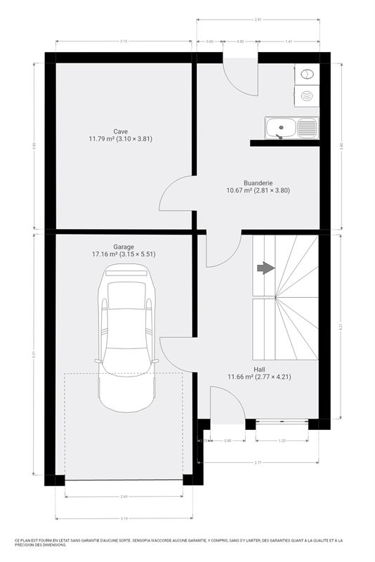 Rez-de-chaussée: Hall d'entré, garage, buanderie, cave.